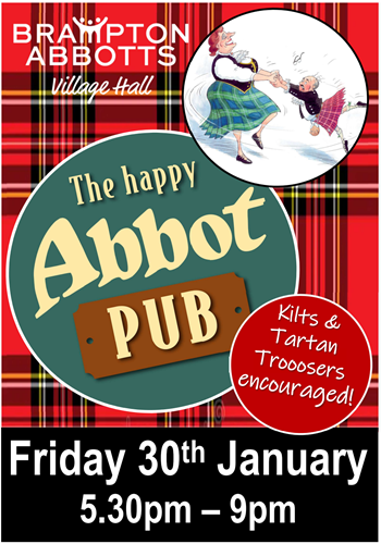 Friday 30th January - The Happy Abbot Pub Night 5.30pm - 9pm